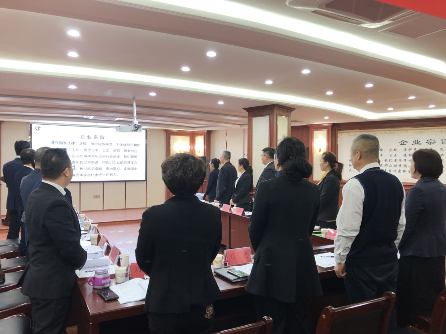 會(huì)議第一項(xiàng)由集團(tuán)經(jīng)濟(jì)運(yùn)行部甘部長(zhǎng)介紹會(huì)議目的及要求,全體人員起來宣讀企業(yè)宗旨。