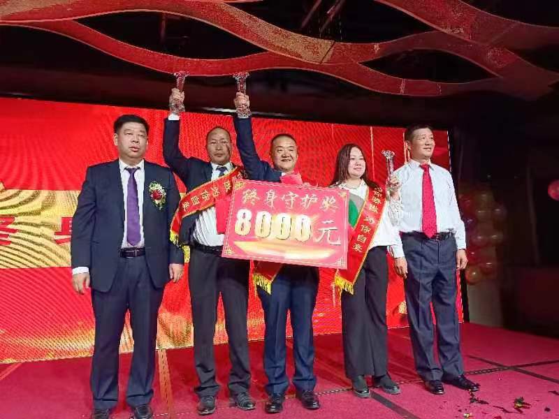 隆成集團(tuán)從來(lái)沒(méi)有忘記過(guò)那些為公司的發(fā)展默默無(wú)聞的貢獻(xiàn)者和守護(hù)者。頒獎(jiǎng)環(huán)節(jié)是整個(gè)晚宴的重要環(huán)節(jié),共頒發(fā)4個(gè)獎(jiǎng)項(xiàng)。分別是風(fēng)雨同舟獎(jiǎng)、舍身?yè)?dān)當(dāng)獎(jiǎng)、終身守護(hù)獎(jiǎng)和無(wú)私奉獻(xiàn)獎(jiǎng)。其中:華泰隆公司蘇平學(xué)、馬玲,海藍(lán)公司黃思純,金雪馳股份公司方曉莉、張航、顧卓楠、鄧君霞、金雪馳吳邦軍、徐芹龍等9名一畢業(yè)就入職隆成,并陪伴隆成走過(guò)10年以上的員工獲得風(fēng)雨同舟獎(jiǎng),每人獎(jiǎng)金5000元;金雪馳股份公司退休職工陳建平多年前因及時(shí)發(fā)現(xiàn)并處理了一處火災(zāi)隱患,為公司挽回財(cái)產(chǎn)損失,獲得了舍身?yè)?dān)當(dāng)獎(jiǎng),每人獎(jiǎng)金5000元;嘉潤(rùn)德凌志公司翟德新、金雪馳股份公司包永珍、康根黨等3名陪伴隆成25年的員工獲得了終身守護(hù)獎(jiǎng),每人獎(jiǎng)金8000元;金天川醫(yī)院名譽(yù)院長(zhǎng)周志明榮獲無(wú)私奉獻(xiàn)獎(jiǎng),每人獎(jiǎng)金10000元。