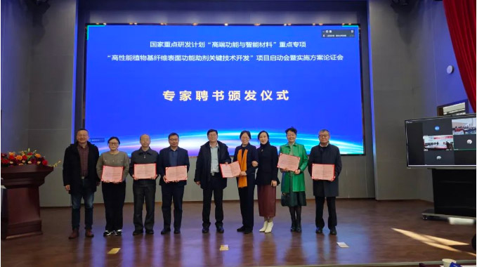 2025年3月20日,由華泰隆化學(xué)助劑有限公司牽頭承擔(dān)的國家重點研發(fā)計劃“高端功能與智能材料”重點專項“高性能植物基纖維表面功能助劑關(guān)鍵技術(shù)開發(fā)”項目啟動暨實施方案論證會在烏魯木齊市新疆隆成集團總部舉行。中國科學(xué)院院士、東華大學(xué)材料科學(xué)與工程學(xué)院院長朱美芳,國家自然科學(xué)基金委員會高技術(shù)研究發(fā)展中心副主任吳根、材料處處長雷瑾亮,自治區(qū)工業(yè)和信息化廳黨組成員、副廳長程多福,以及來自全國各地的行業(yè)專家等近30位嘉賓如約而至參加本次會議。