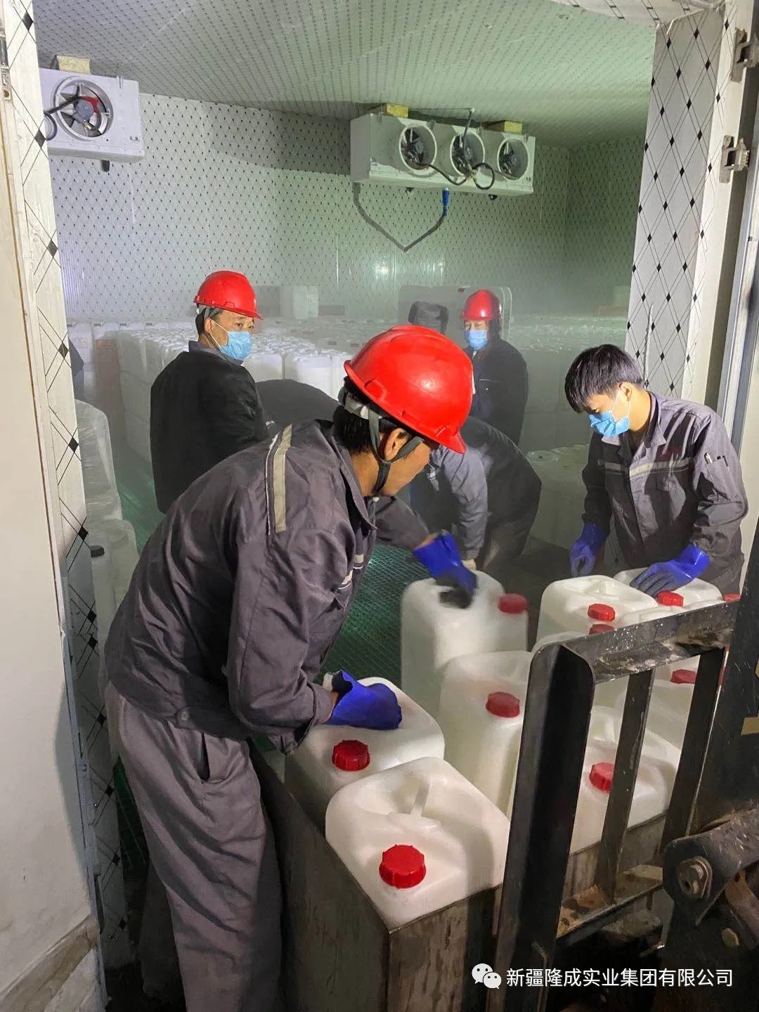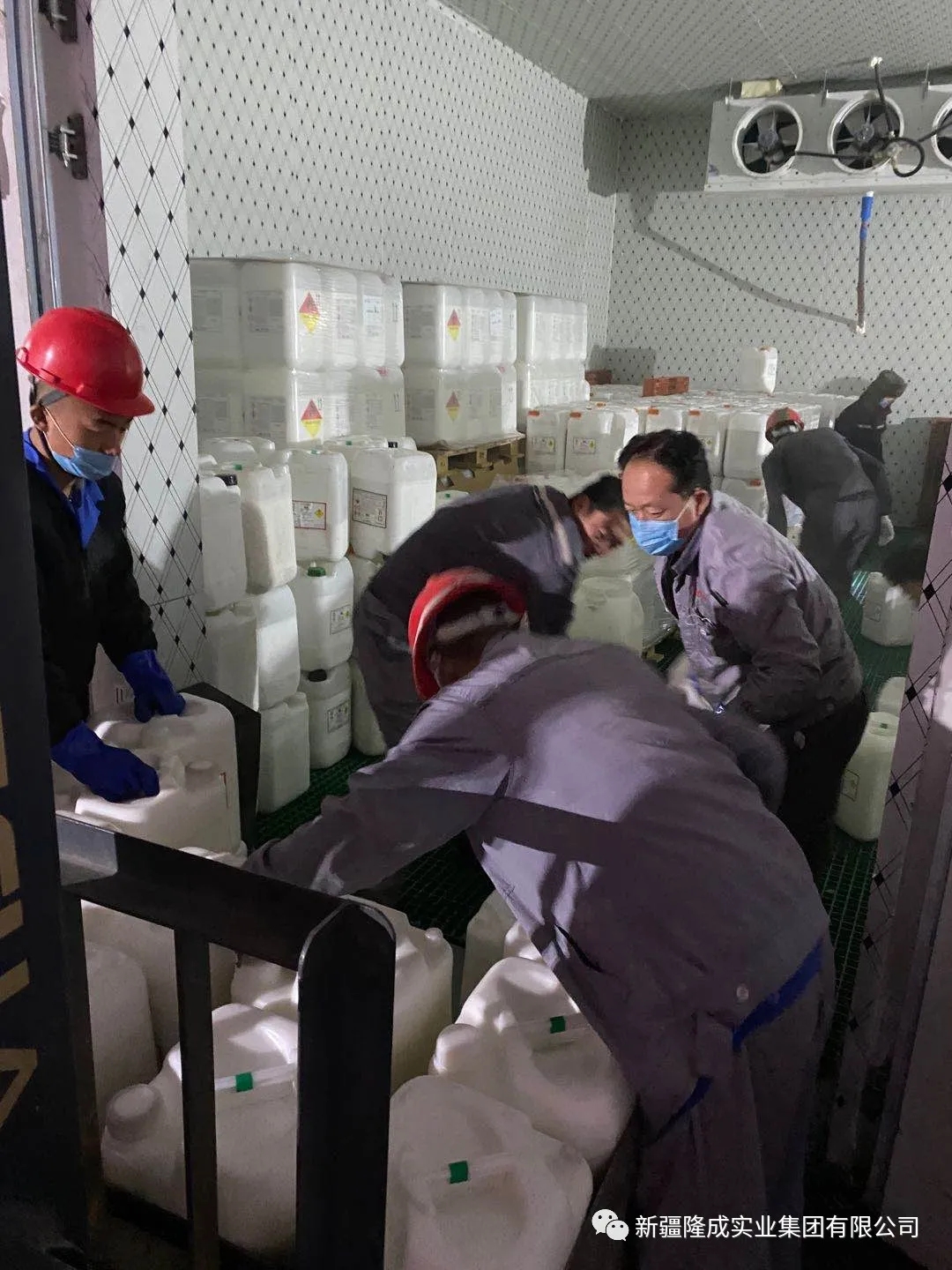 烏魯木齊市華泰隆化學(xué)助劑有限公司的領(lǐng)導(dǎo)干部和各職能部門的員工、工人迎接著朝陽(yáng)開(kāi)始在裝運(yùn)發(fā)車。為了保障供應(yīng),貨物的正常發(fā)出,零下二十幾度的冷庫(kù)擋不住他們的腳步,大風(fēng)大雨也抵不住他們堅(jiān)定的工作信念。