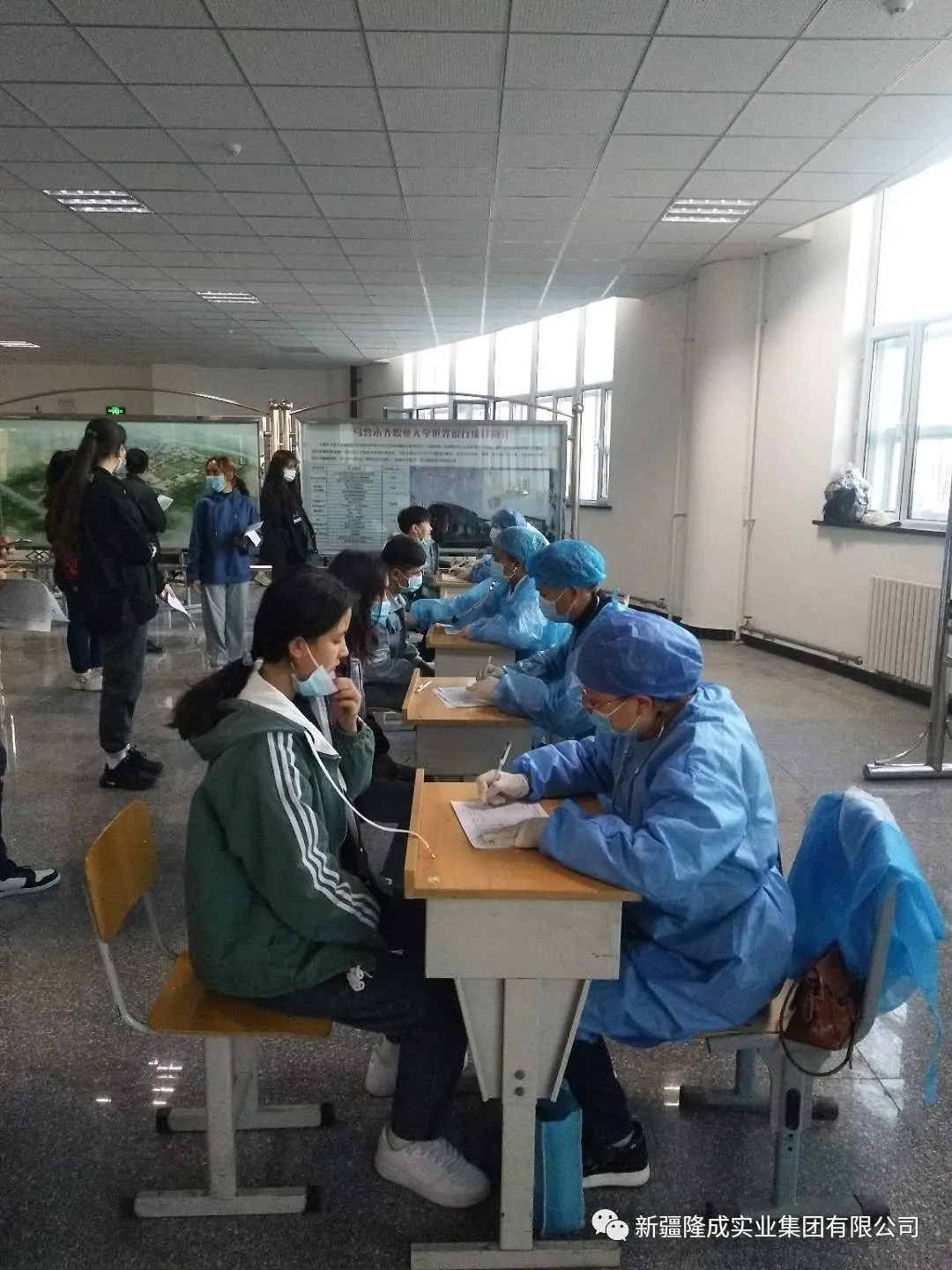 此次大學生體檢正值烏魯木齊疫情防控的特殊時期,體檢學生人數(shù)多、疫情防控要求嚴、現(xiàn)場組織難度大。體檢過程中,全體醫(yī)護人員嚴格落實疫情防控相關(guān)規(guī)定,嚴格執(zhí)行登記、測溫、消毒、戴口罩、1米間距、通風等防范措施,現(xiàn)場配備急救車、急救藥品,現(xiàn)場指揮人員及時疏導(dǎo)體檢大學生,提醒有關(guān)防疫注意事項和要求,確保了體檢任務(wù)圓滿完成、疫情防控萬無一失。擔負此次體檢任務(wù)的金天川醫(yī)院、金橋社區(qū)衛(wèi)生服務(wù)中心的內(nèi)科、外科、B超、心電圖、檢驗科、口腔科、眼科等43名醫(yī)務(wù)人員。