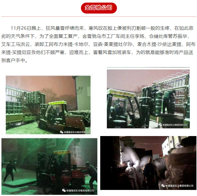 根據(jù)烏魯木齊市政府下發(fā)關(guān)于復(fù)工復(fù)產(chǎn)的通知,新疆隆成實(shí)業(yè)集團(tuán)有限公司下屬各單位均在第一時(shí)間內(nèi)調(diào)整狀態(tài),為全面復(fù)工復(fù)產(chǎn)做準(zhǔn)備!