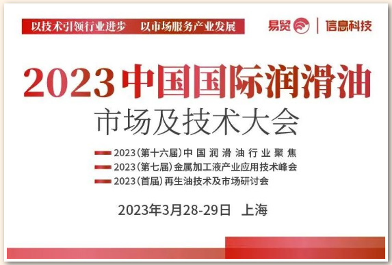 由易貿(mào)信息科技主辦的“2023中國(guó)國(guó)際潤(rùn)滑油市場(chǎng)及技術(shù)大會(huì)——2023(第十六屆)中國(guó)潤(rùn)滑油行業(yè)聚焦、2023(第七屆)金屬加工液產(chǎn)業(yè)應(yīng)用技術(shù)峰會(huì)、2023(首屆)再生油技術(shù)及市場(chǎng)研討會(huì)”將于2023年3月28-29日在上海召開(kāi)。金雪馳作為國(guó)家級(jí)重點(diǎn)專(zhuān)精特新“小巨人”企業(yè)受邀參會(huì)。