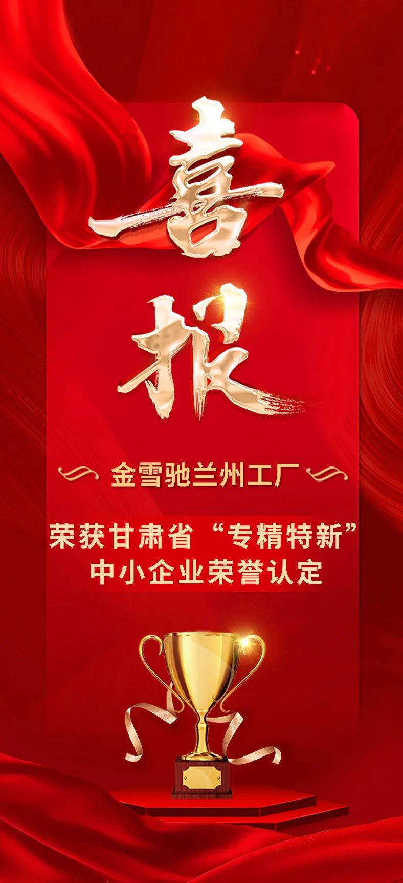 喜報|金雪馳蘭州工廠獲評為甘肅省“專精特新”中小企業(yè)
